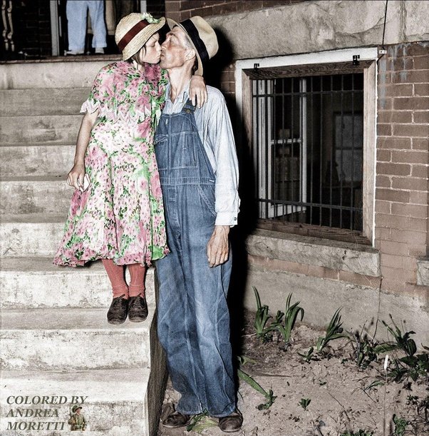 A man named Homer Peel kisses his wife, Geneva Peel, in 1937. She was just ten years old, and an oprhan. Peel lied to authorities initially and told them Geneva was twelve……