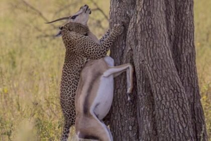 See this image? That's a leopard carrying about 80–100 pounds (35–45 kg)…