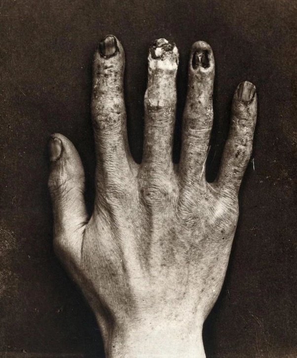 Hand belonging to an X-ray technician at the Royal London Hospital, which shows the damage from radiation exposure, 1900.