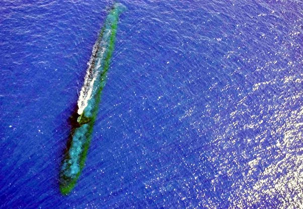 Outside of tropical waters, it is extremely difficult to detect a submerged submarine visually. The hull color basically merges with the color of the ocean water. A submarine could be at periscope depth (without periscope exposed), and you will probably not see it. A periscope feather becomes your only visual indication of a submerged submarine and, dependent upon the prevailing conditions, even this may be very challenging.