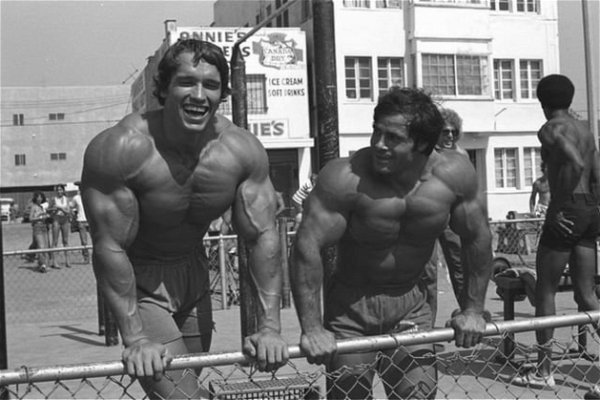 You’ll see this man hang out with other legends of the action hero genre, and you notice he’s not so far off in terms of height to a man like Stallone, who’s only about 5′9″ or 5′10″. Both men have gotten injured on-set plenty of times. Both men have worked their asses off to get where they are. Both had rough childhoods, both were born in the 1940s, Schwarzenegger in post-war Austria, Stallone the son immigrants from Sicily and Ukraine.