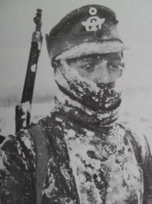 The cold was so great that men would freeze even in their sleep and their rifles would seize up. They had to fight the dreadful cold with their blankets and coats as well as they had to fight the Soviet Army.