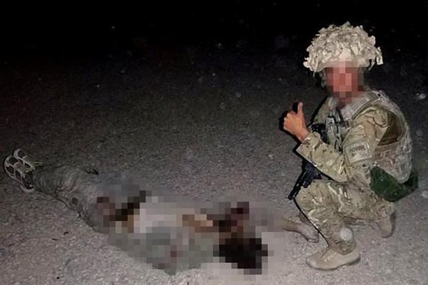 A British soldier posing with a dead Taliban in Afghanistan. (Photo: The Herald)