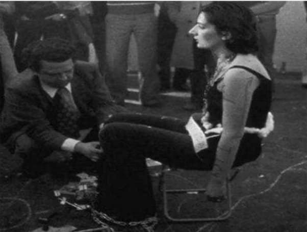 She then invited a large group of people to choose any object from the table that they could use as they saw fit on Marina’s body.