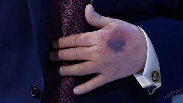 Why does Trump have bruises on the backs of his hands?