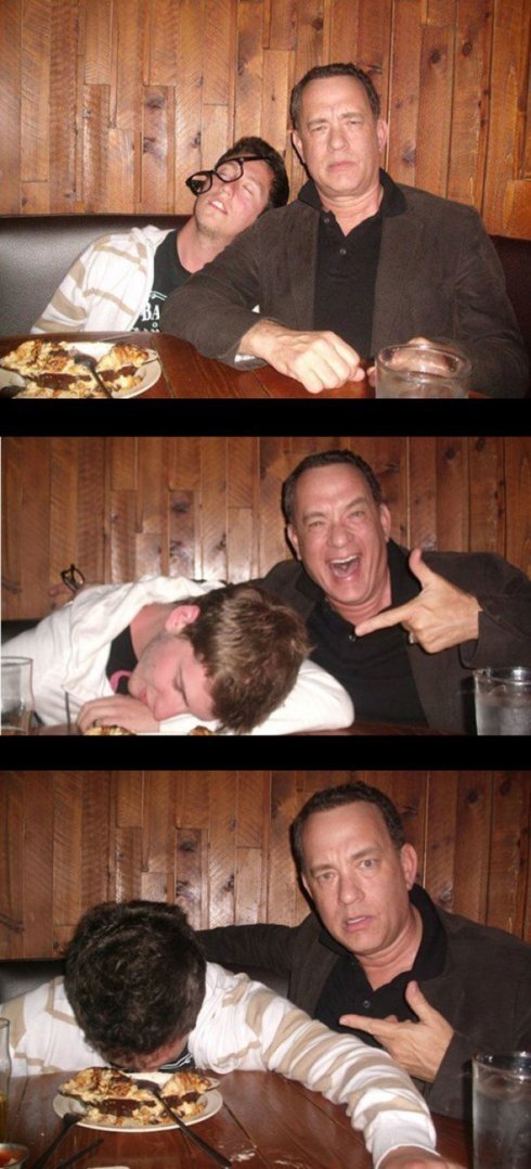 In 2012, a few pictures were posted on Reddit of Tom Hanks sitting next to what seemed to be a drunk man at a bar with the caption: “My friend met Tom Hanks, stole his glasses and pretended to be wasted.”