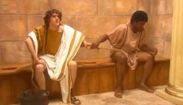 1 – Did you know that the ancient Romans used to use a sponge attached to the end of a wooden handle to clean themselves after “number 2” — and share this contraption with everyone? Yuck…