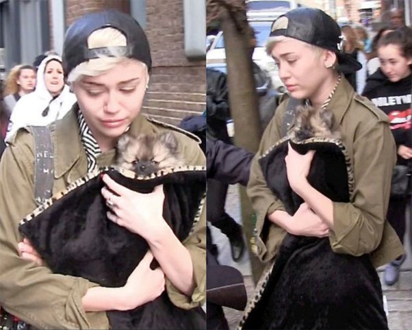 In 2014, Miley Cyrus was pictured crying as she exited a hotel and walked towards her car, while paparazzi and fans took pictures and filmed her in her vulnerable state.