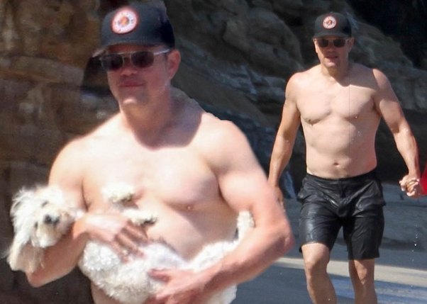 I mean Damon’s ain’t no wilting flower, he’s a pretty strong guy. However for Wahlberg, I think fitness is more of a trademark/lifestyle sort of thing. Whereas Damon is a kinda big but not a bodybuilder level guy.